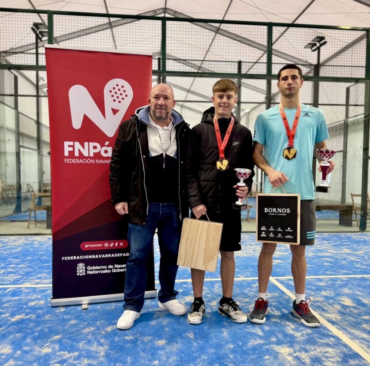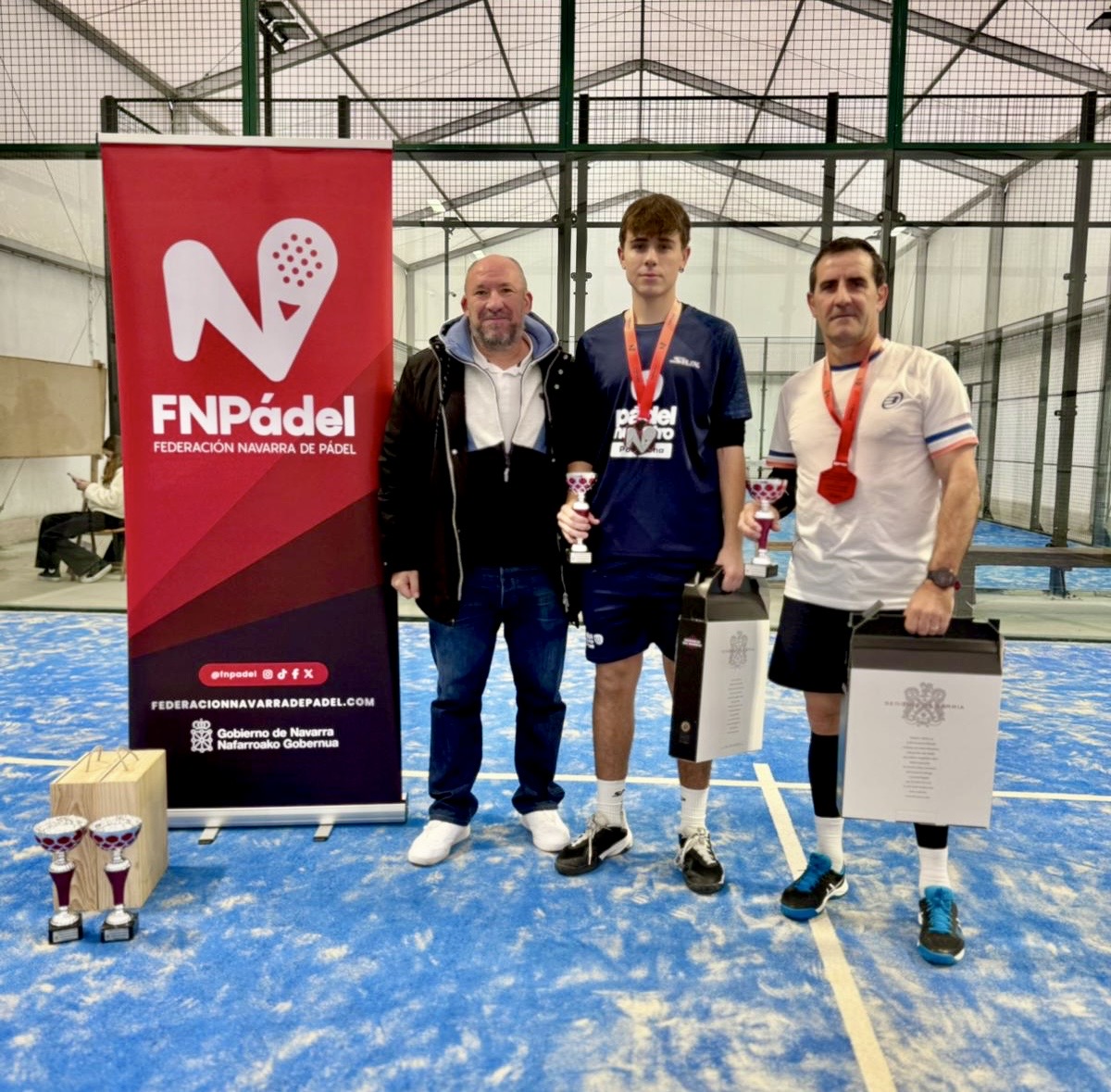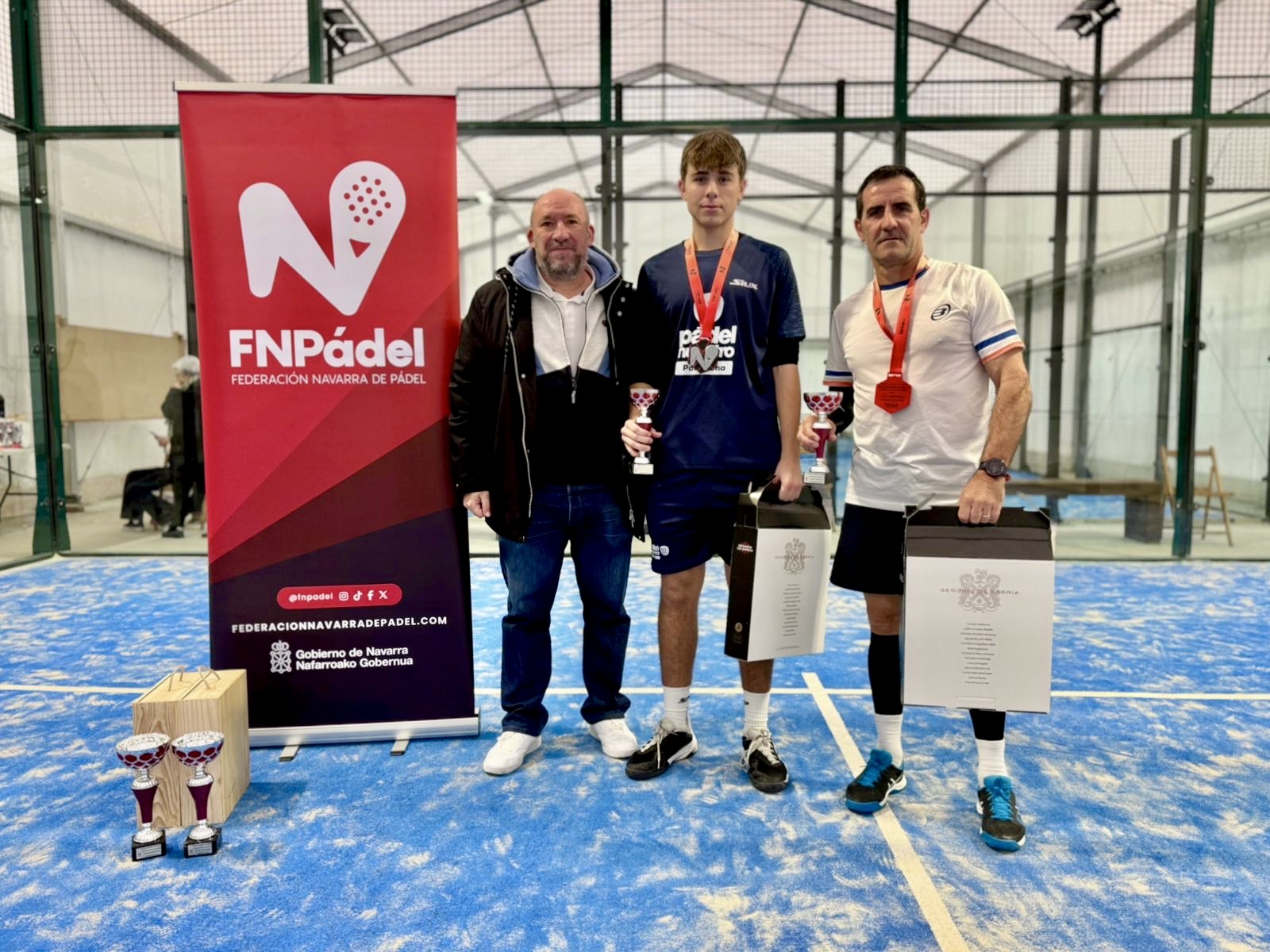 La entrega de premios contó con la presencia de Pedro García, presidente de la Federación Navarra de Pádel, y de Asier Oscoz, vicepresidente del club anfitrión, quienes fueron los encargados de entregar los trofeos y los premios de Señorío de Sarría a las parejas campeonas y subcampeonas del torneo.